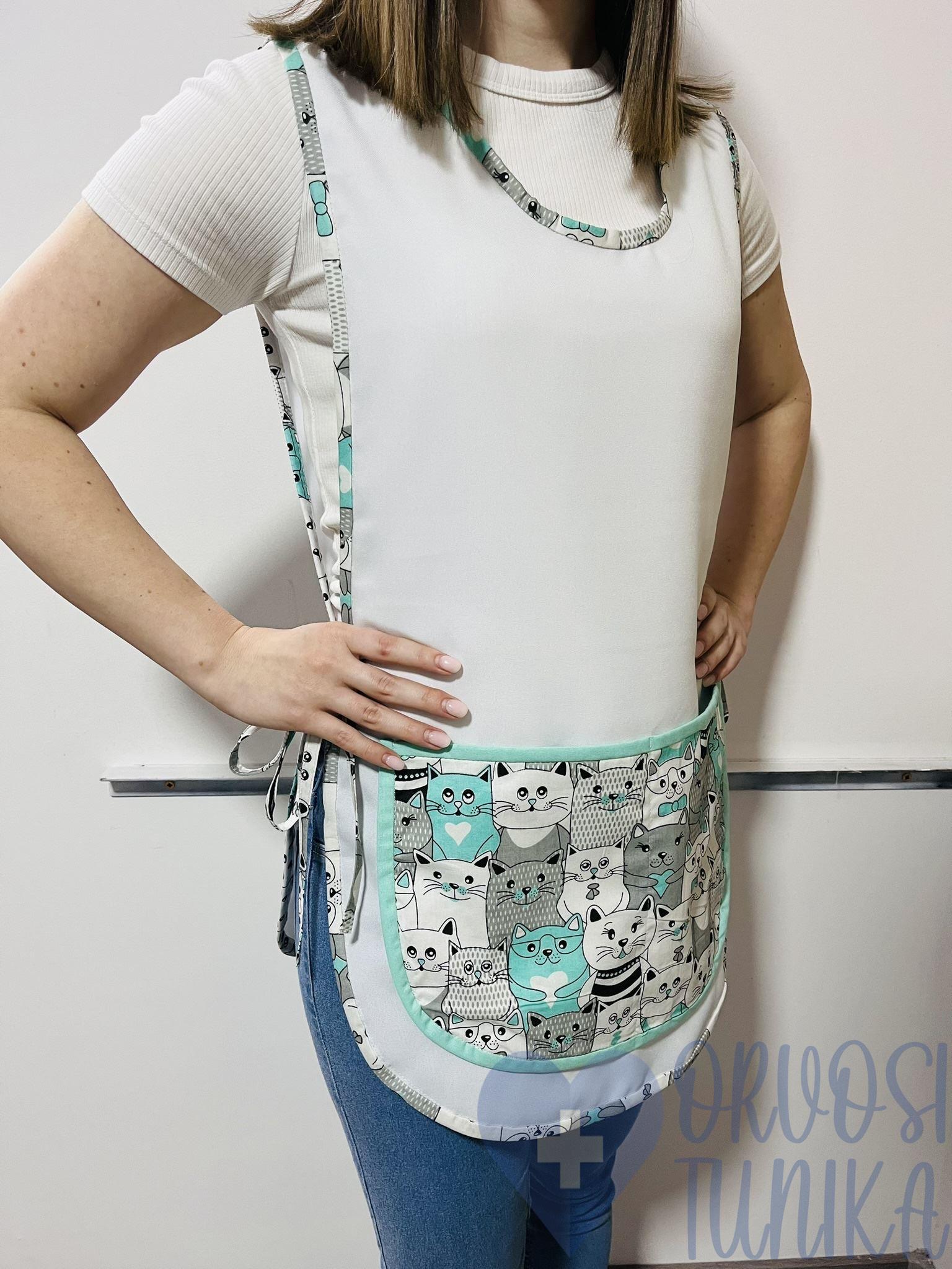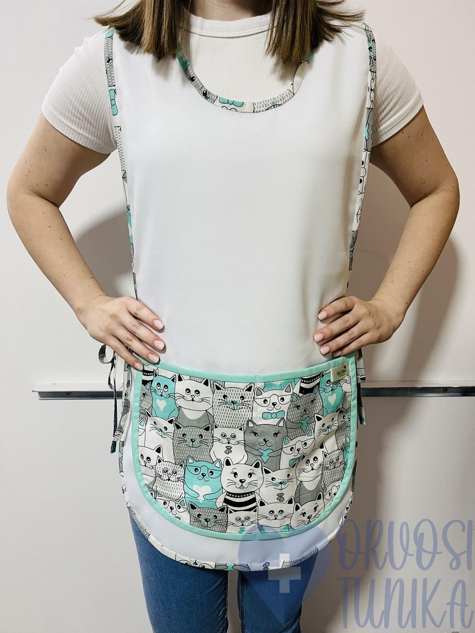 Fehér lapköpeny – menta-szürke cicás 4.990 Ft