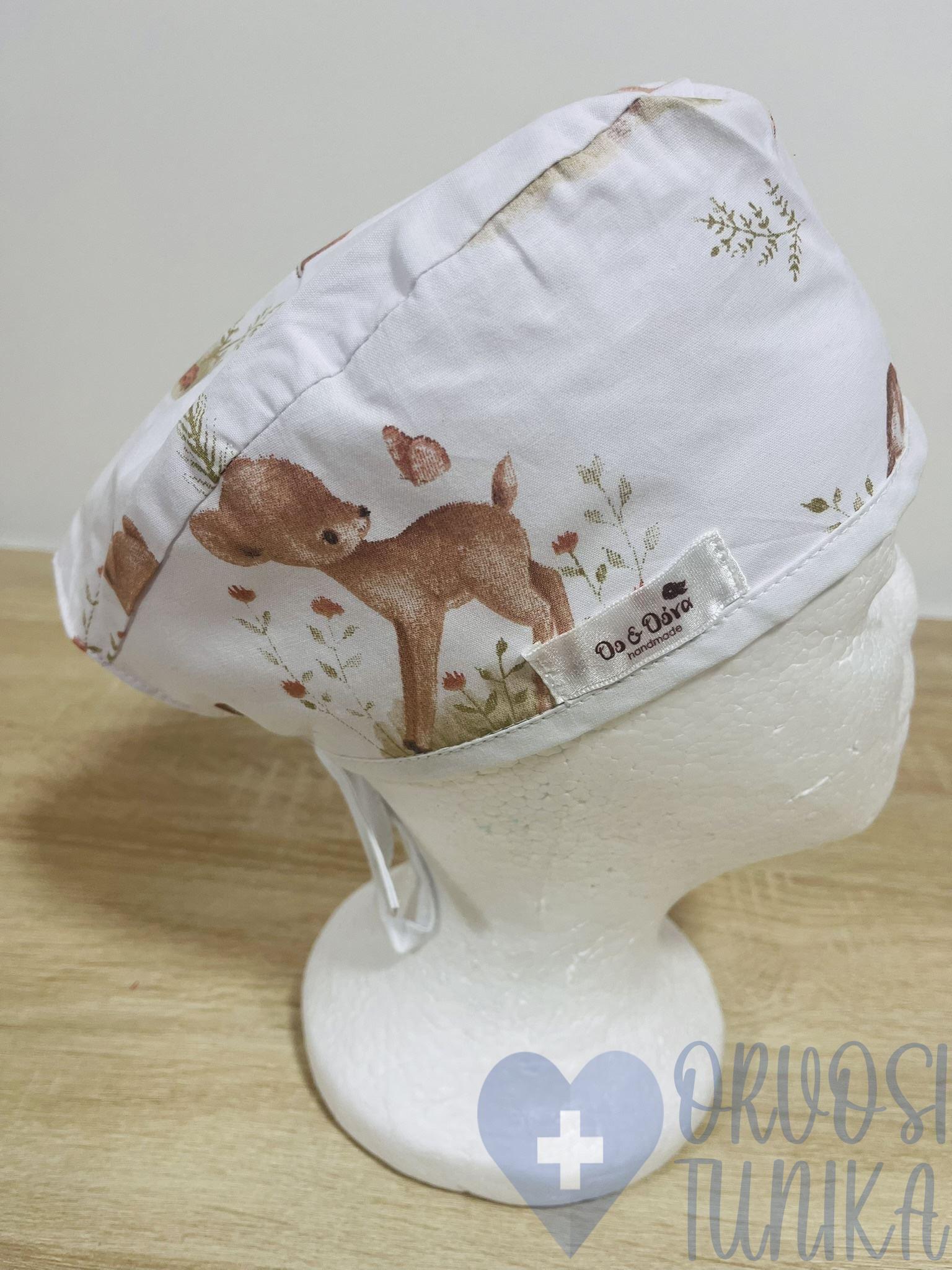 Műtős sapka – fehér erdei állatos