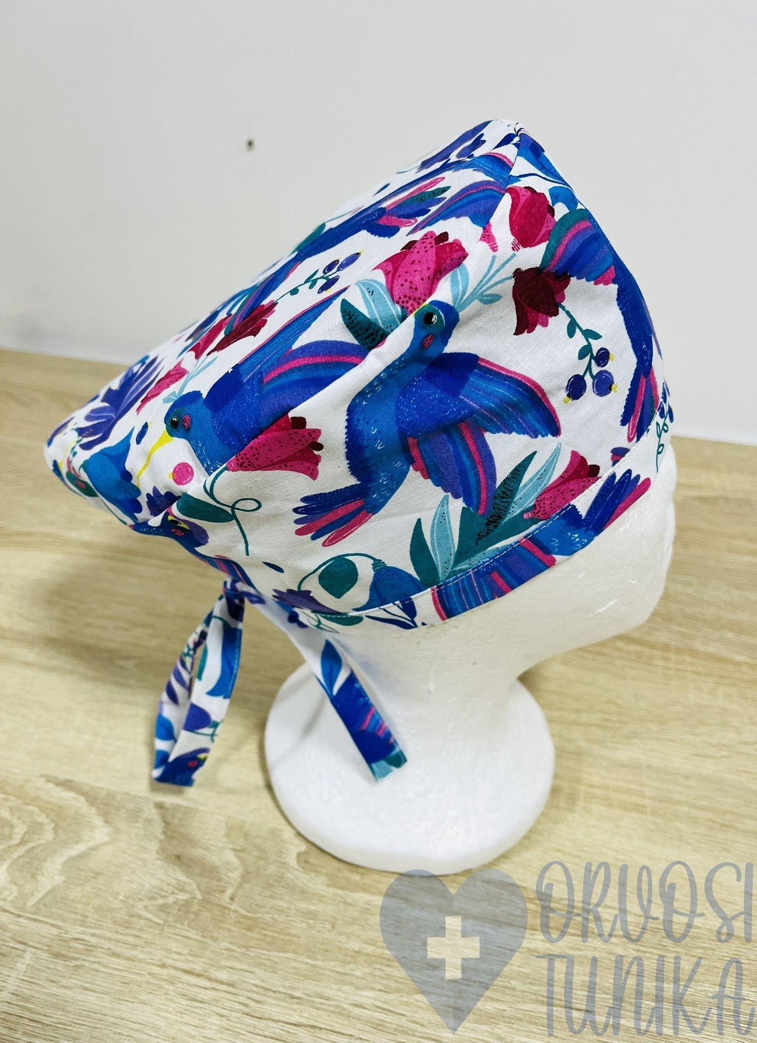 Műtős sapka – lila-kék kolibris