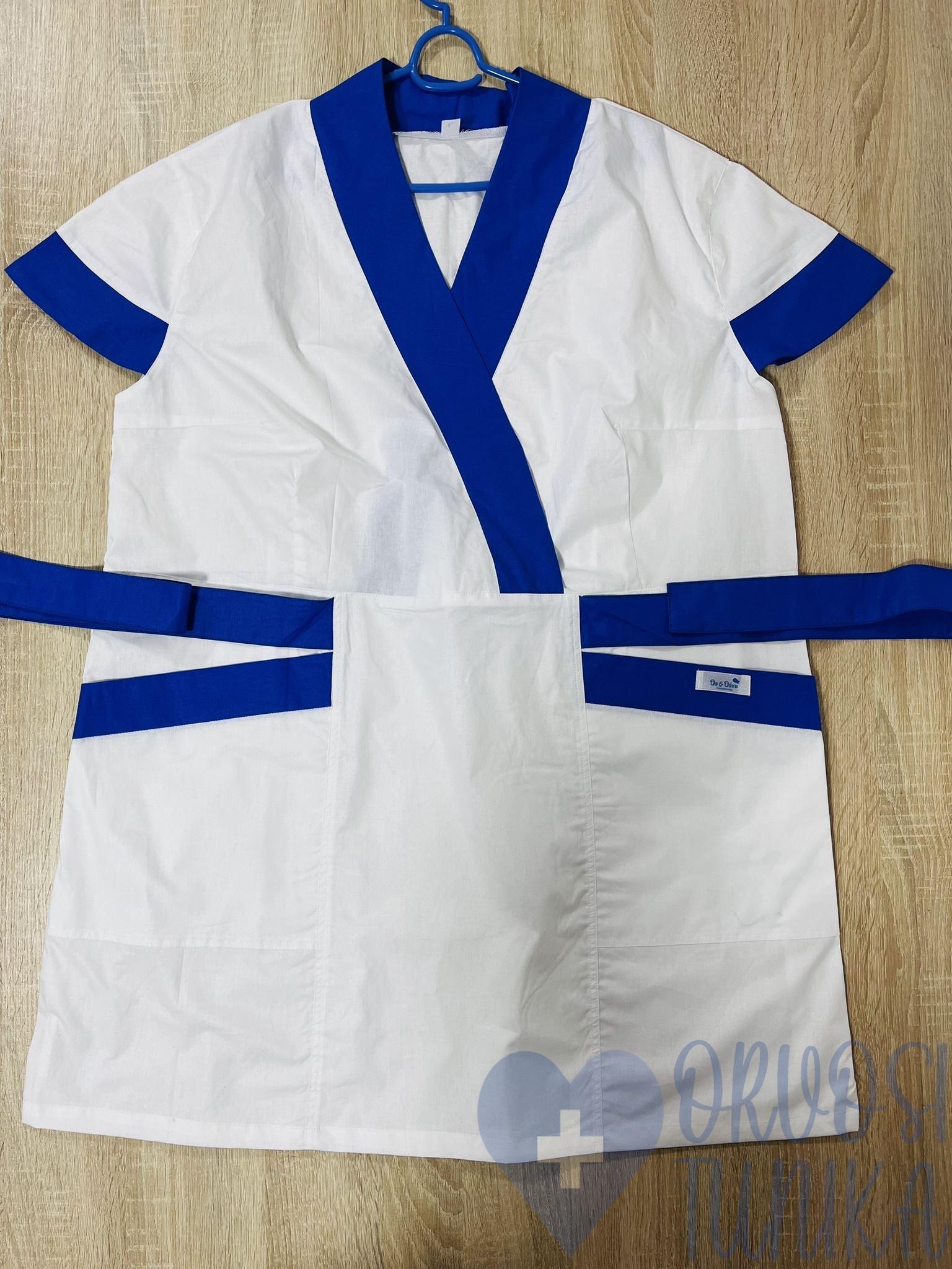 Termékeink 100% pamutvászon anyagból készülnek. Kényelmes, elől két zsebbel ellátott, egymásra simuló mellrész, ami V nyakat formáz a tunikának. Hátul a kötő segítségével egyéni méretre igazítható.