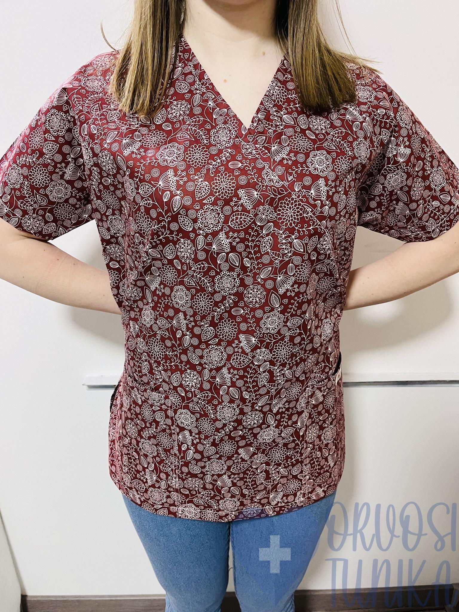 Orvosi-Nővérke tunika – bordó virág motívumos