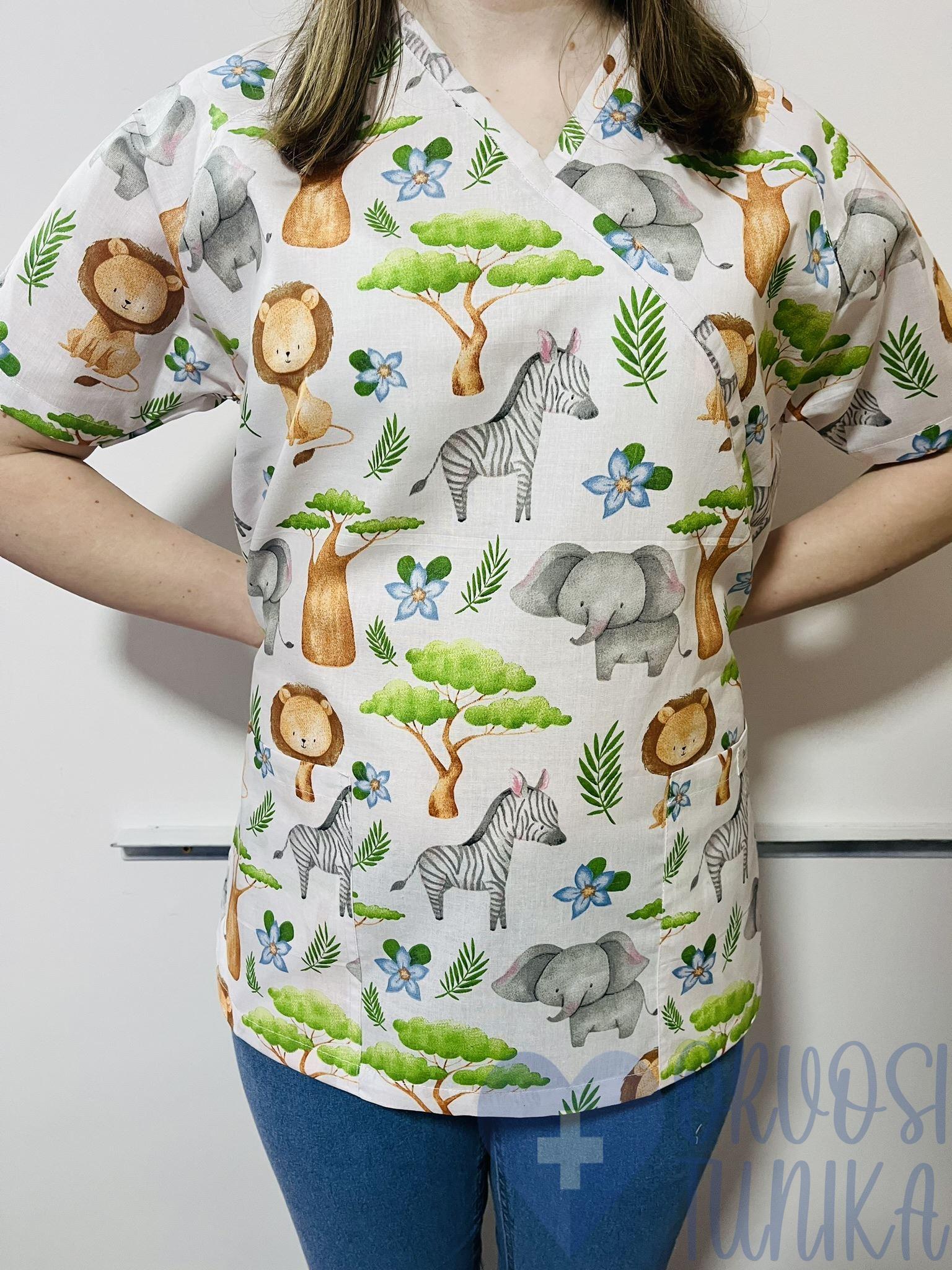 Termékeink 100% pamutvászon anyagból készülnek. Kényelmes, elől két zsebbel ellátott, V nyakú kivitelben. Hátul a kötő segítségével egyéni méretre igazítható. Oldalt hasíték teszi még kényelmesebbé.