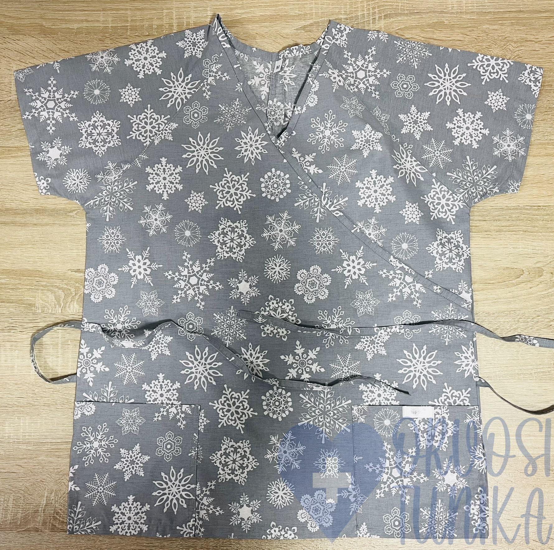Orvosi-Nővérke tunika – fehér-szürke hópelyhes