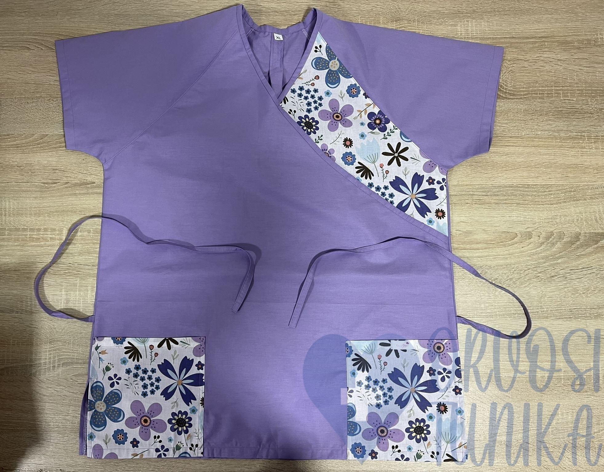 Orvosi-Nővérke tunika – kék-lila virágos