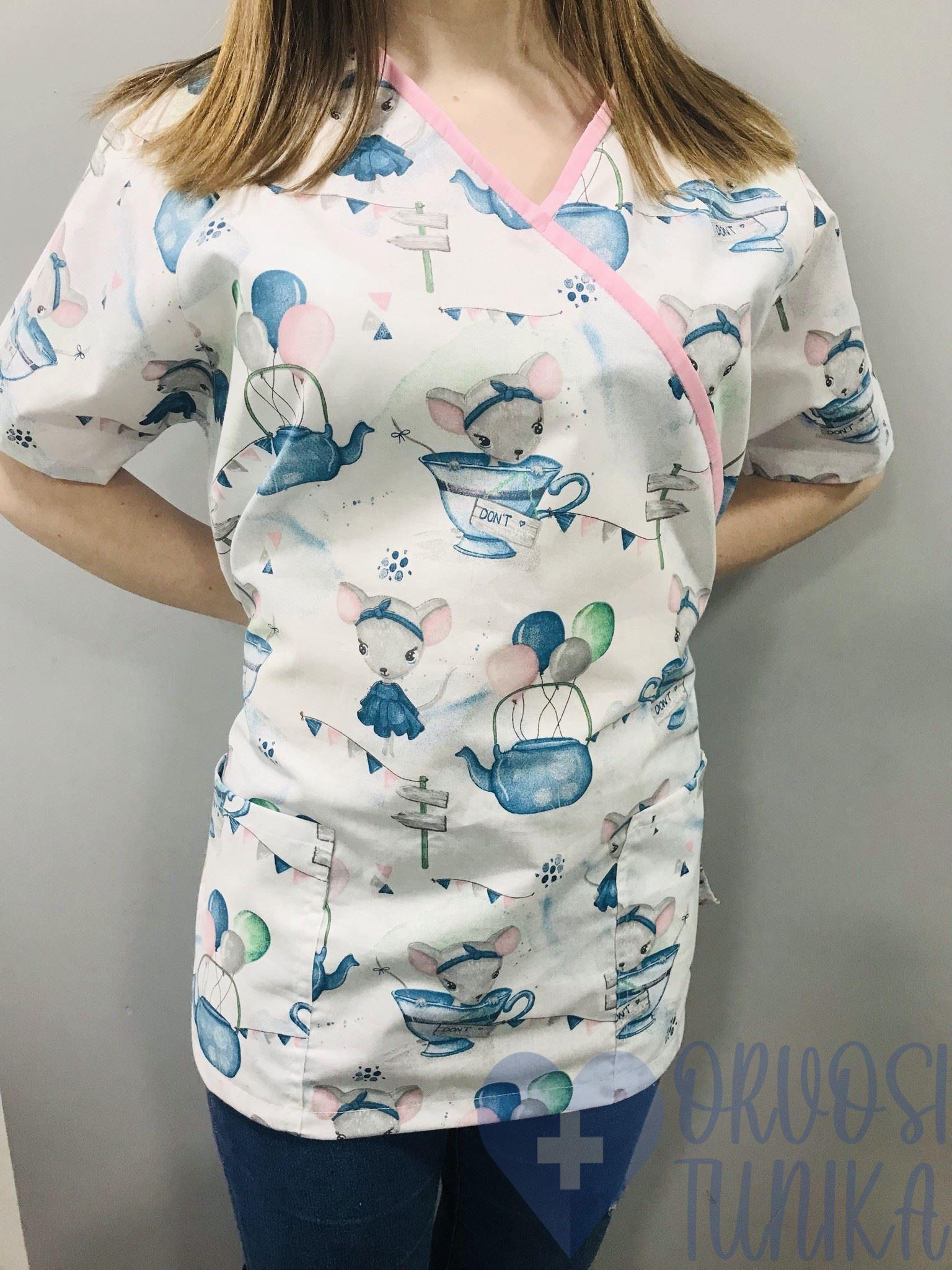 Orvosi-Nővérke tunika – pasztell rózsaszín-kék egérkés