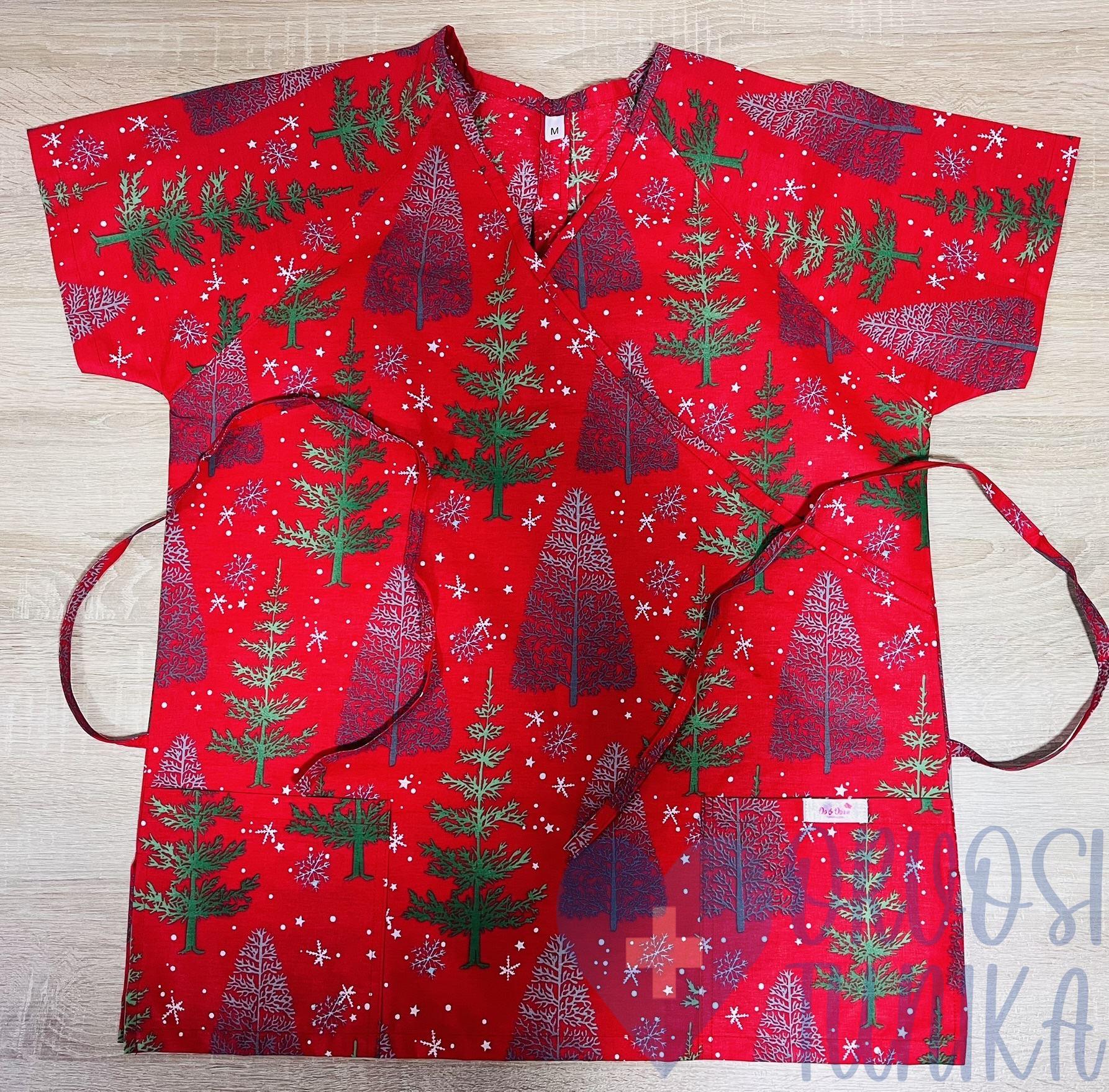 Orvosi-Nővérke tunika – piros karácsonyfás