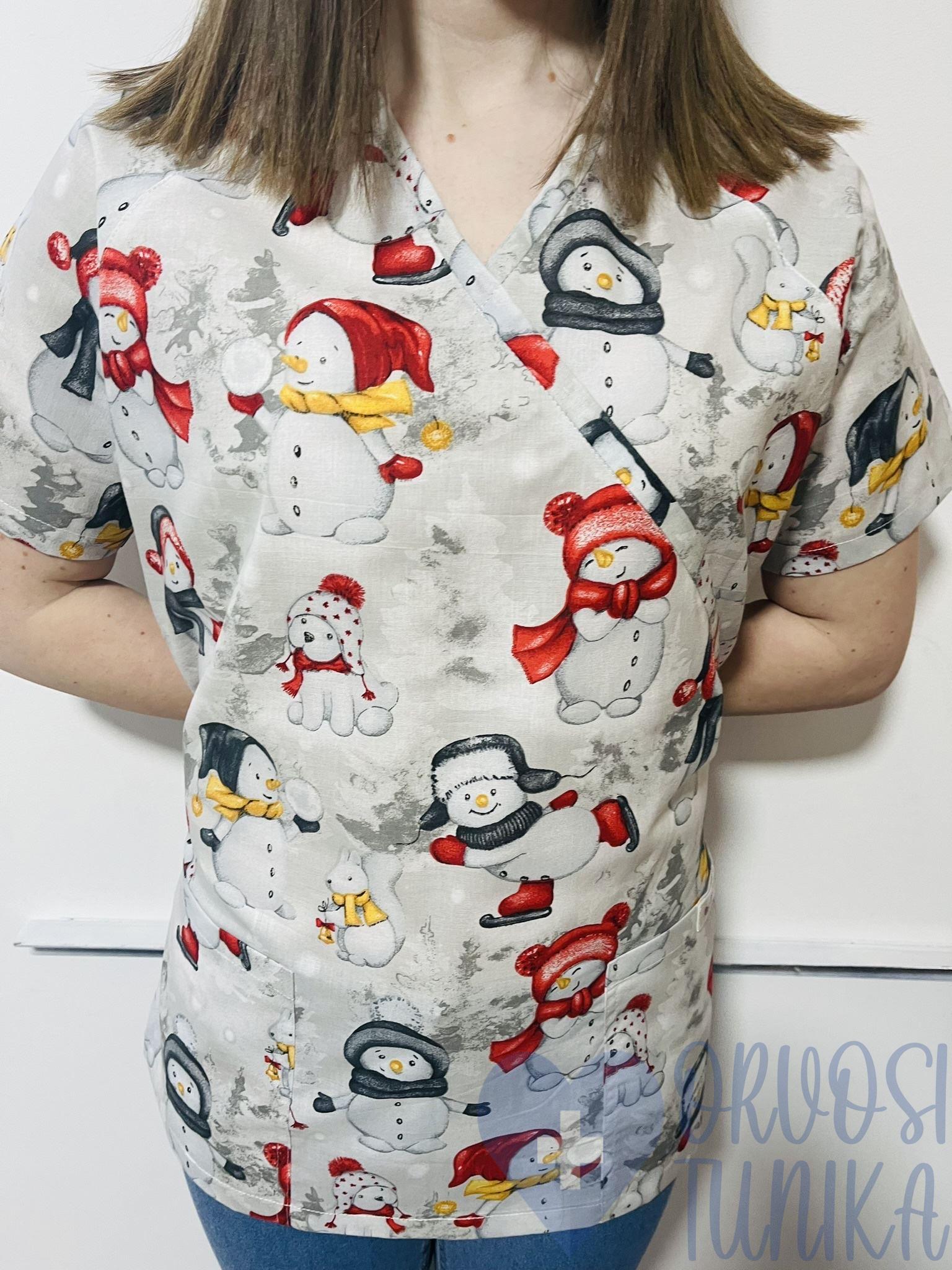 Orvosi-Nővérke tunika – piros-szürke hóemberes
