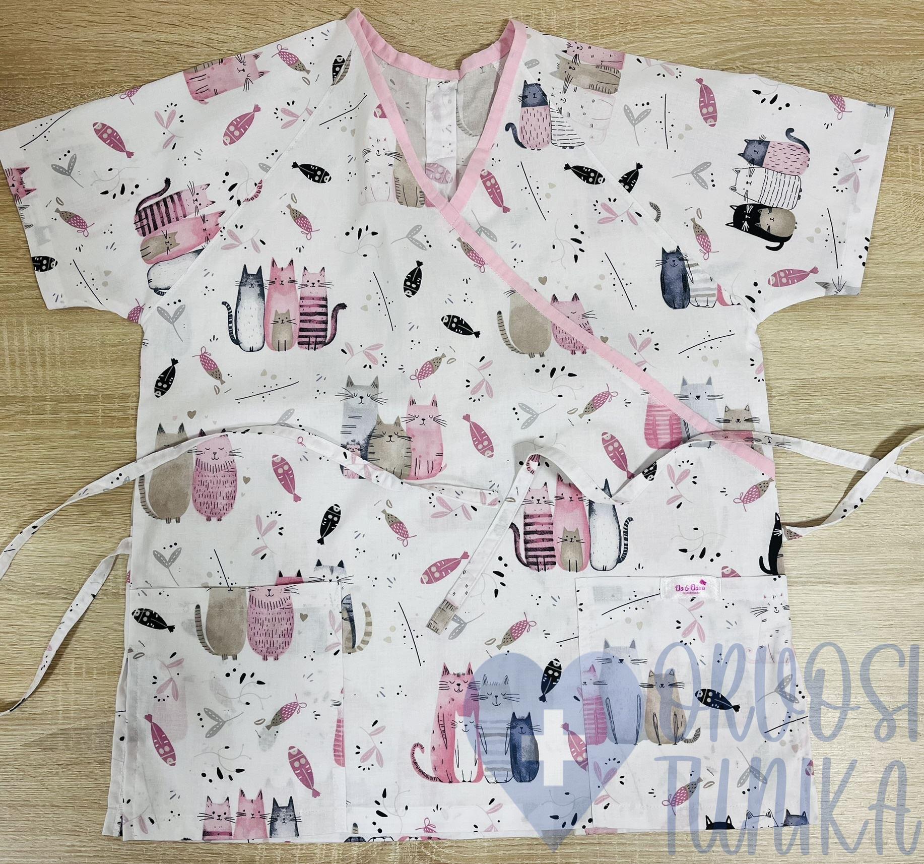 Orvosi-Nővérke tunika – rózsaszín halas cicás
