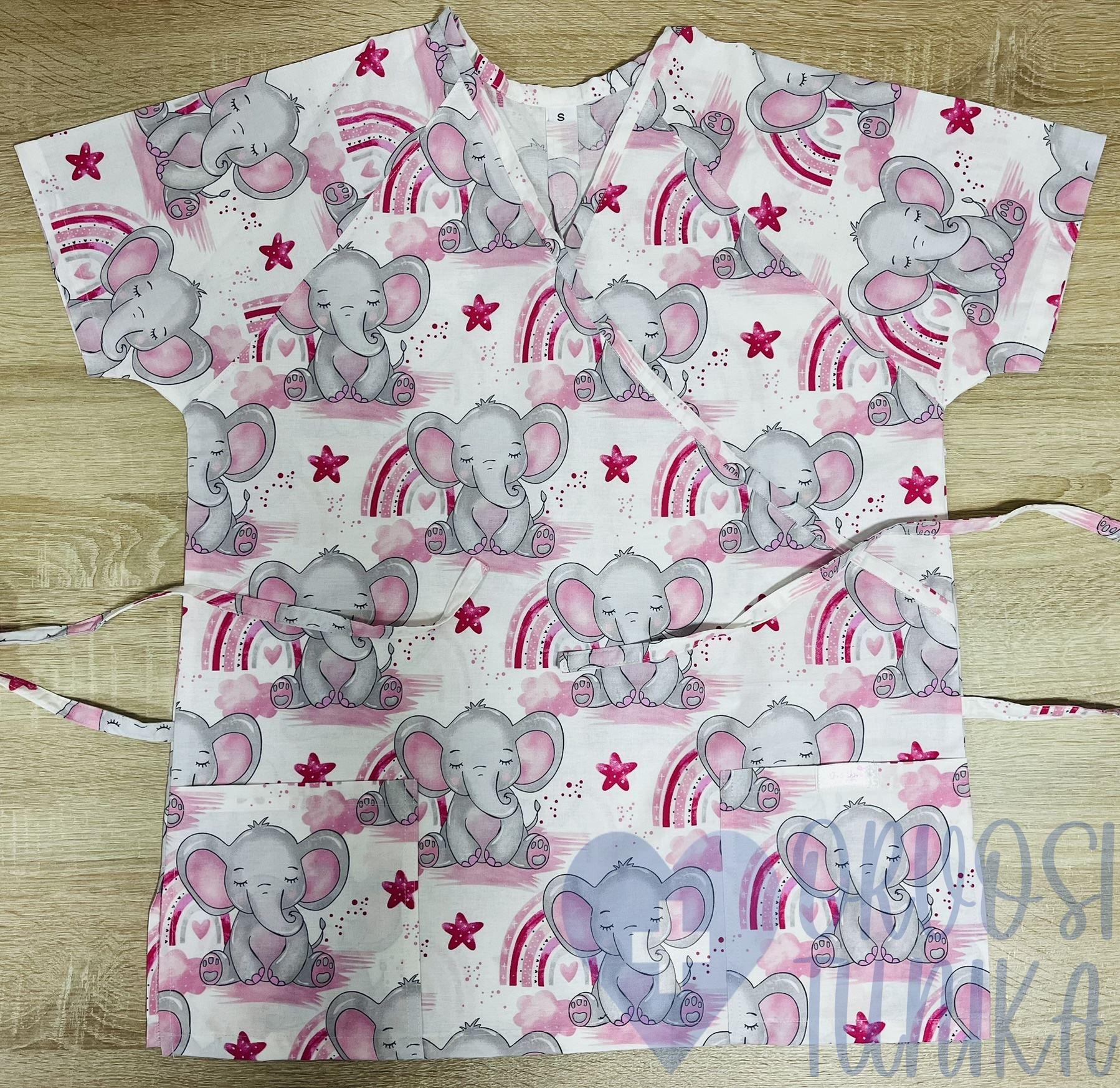 Orvosi-Nővérke tunika – rózsaszín szivárványos elefántos